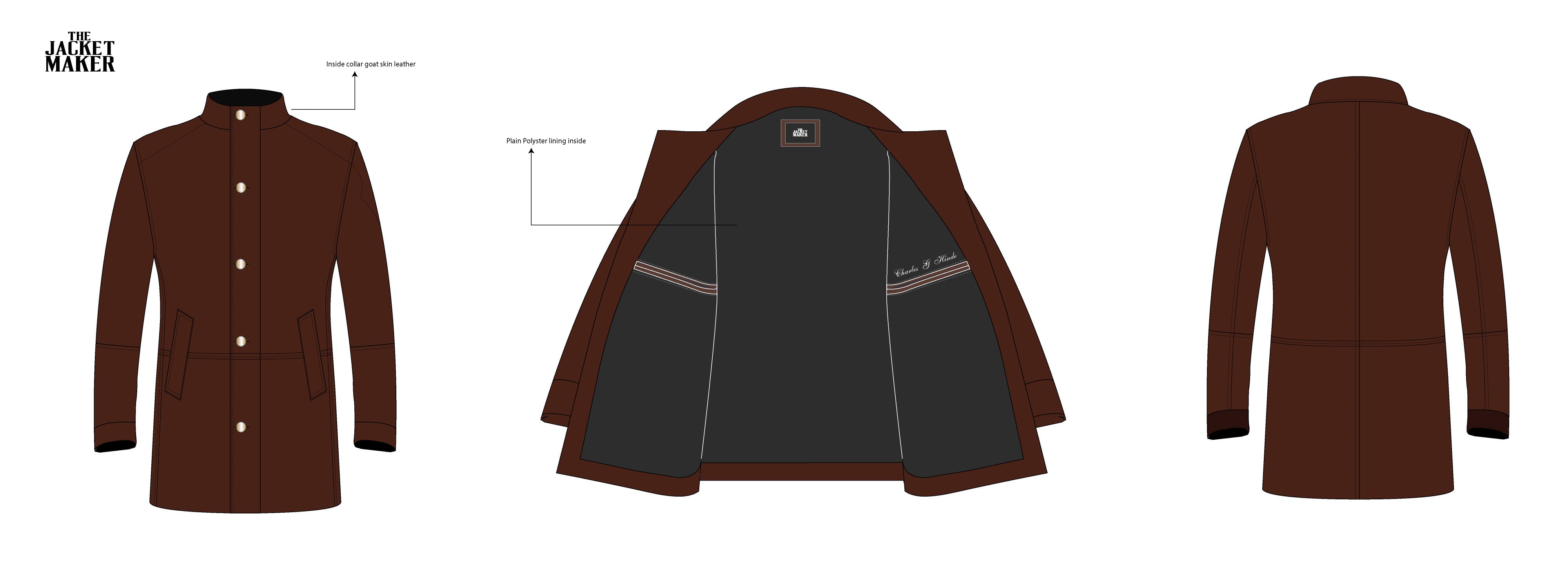 • Embroidery of the initials "Charles G Hinde" on the left inner lining pocket (as per illustration)