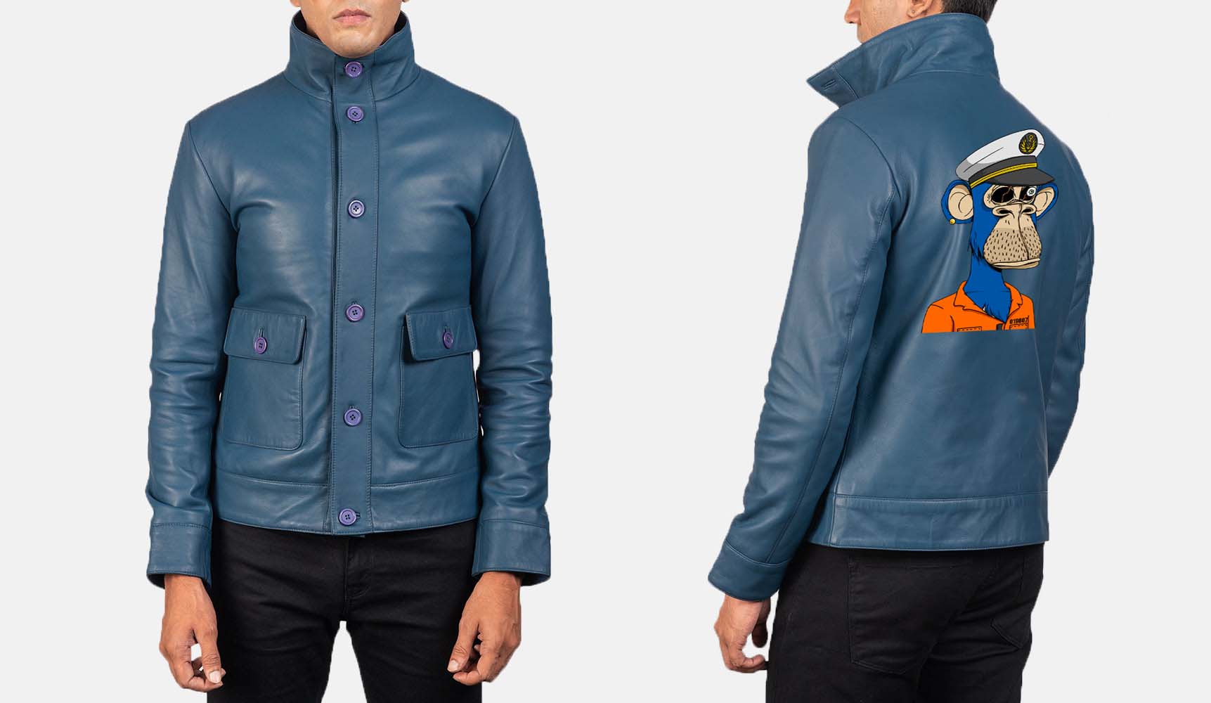 • Columbus Blue Leather Bomber Jacket with the following changes: