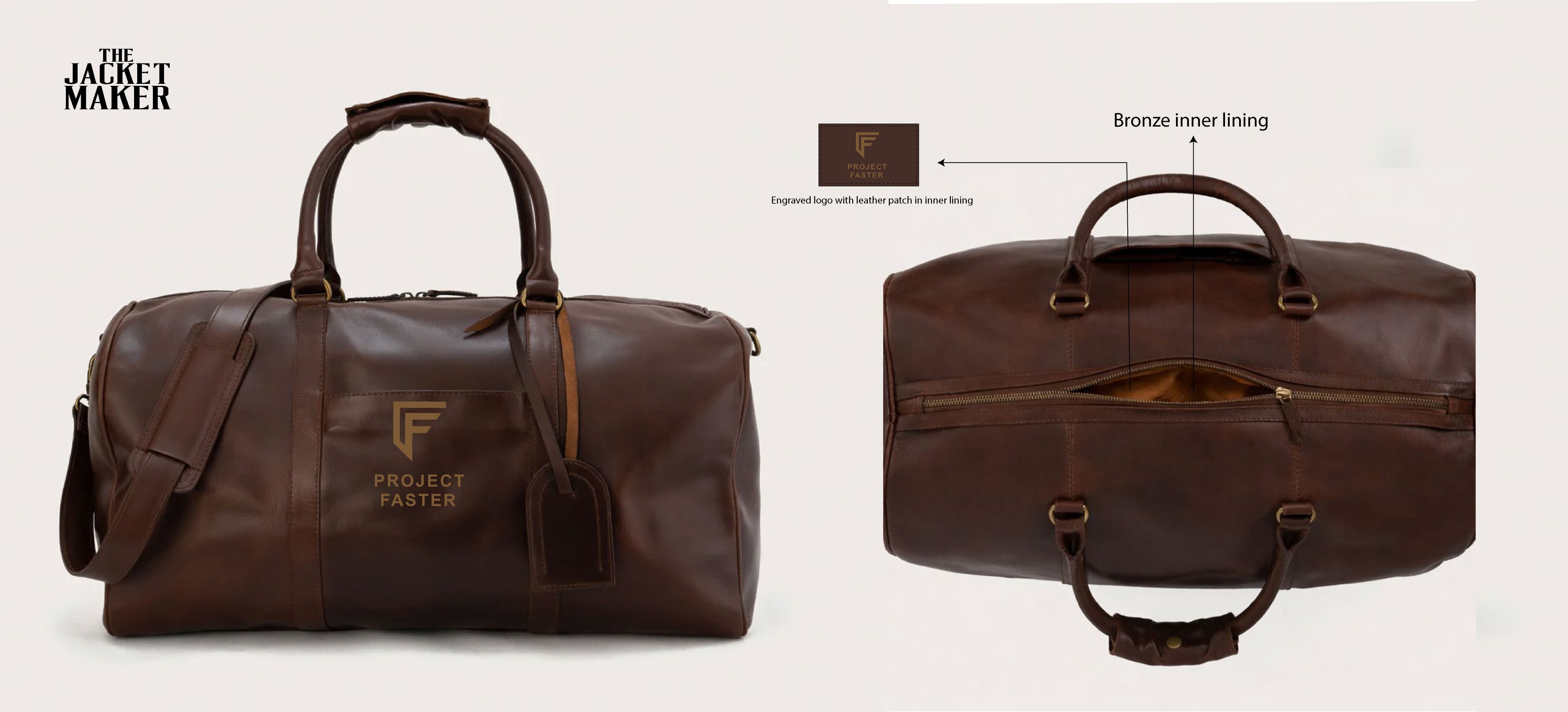 The Darrio Vintage Brown Leather Duffle Bag with the customizations you’ve outlined: