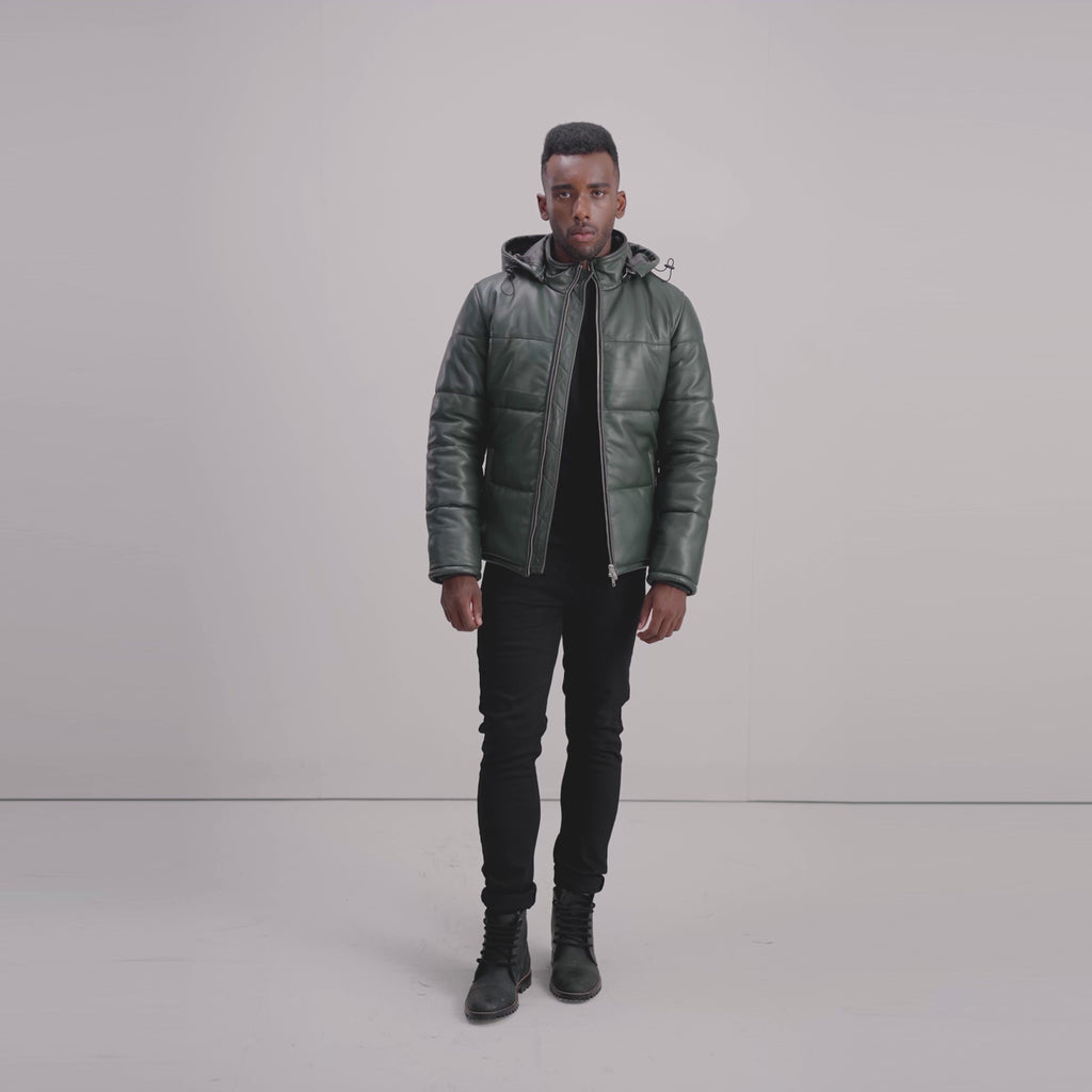 Gordon Green Hooded Leather Puffer Jacket
